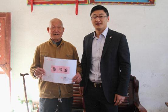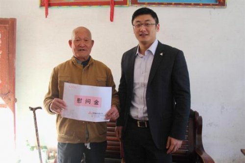 9月29日上午,中秋国庆双节来临之际,三胞集团副总裁岳雷在送驾村村委会陈主任陪同下,前往六合区竹镇镇送驾村慰问“三老”余福成老先生。
