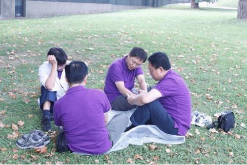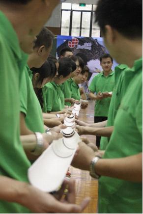 下午的项目开赛在即,大家互帮互助,揉揉你的肩,扭扭我的腰