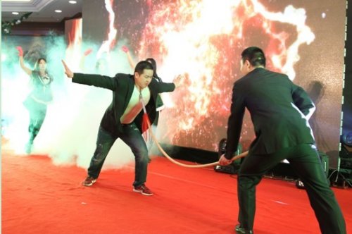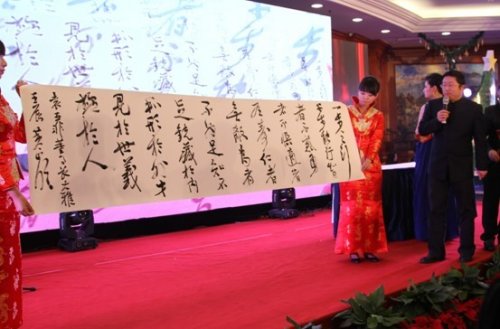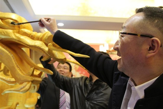 签到环节中,集团领导层和嘉宾们的签名“云彩”组成一道道祥云托着一条盛世金龙,袁亚非董事长手握斗笔为晚会的吉祥物“点睛”。笔落瞬间,祥云飞龙,一跃升空。瞬时,场内LED灯光、音乐、掌声,热烈交融。这寓意着三胞集团将在以袁亚非董事长为核心的领导班子的带领下和全体员工的共同努力下继续坚定信念、执着拼搏,在跨越发展中砥砺奋进。