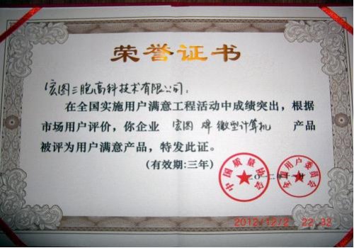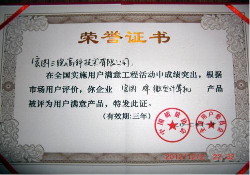 宏图牌电脑蝉联“全国用户满意产品”称号
