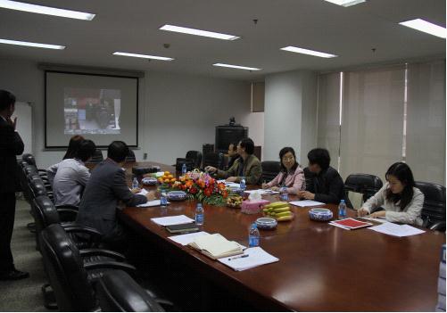 江苏省档案局复评小组正在认真听取档案管理工作汇报