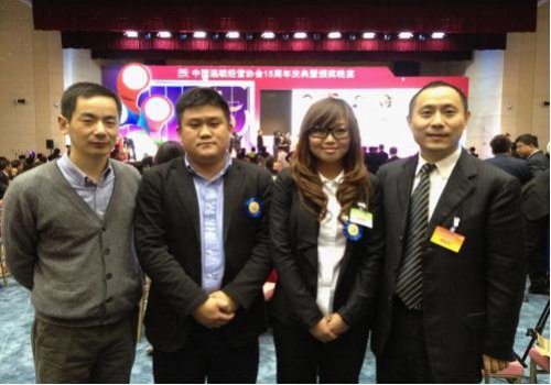 图:宏图三胞两位“2012 年度CCFA 金牌店长”(中间)与公司领导合影。